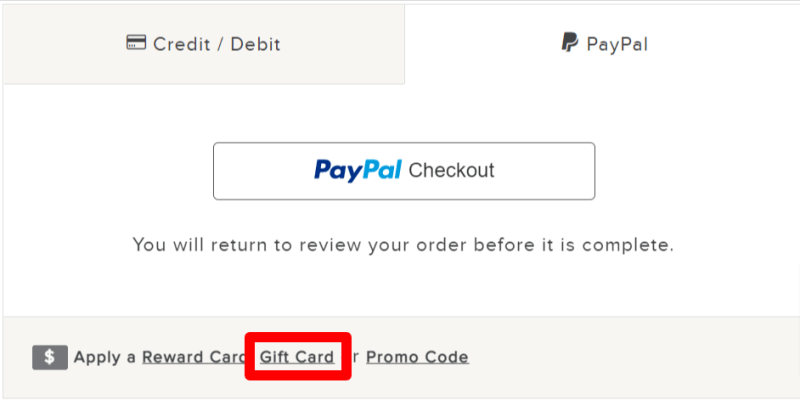 At the checkout look for the 'Gift Card' option